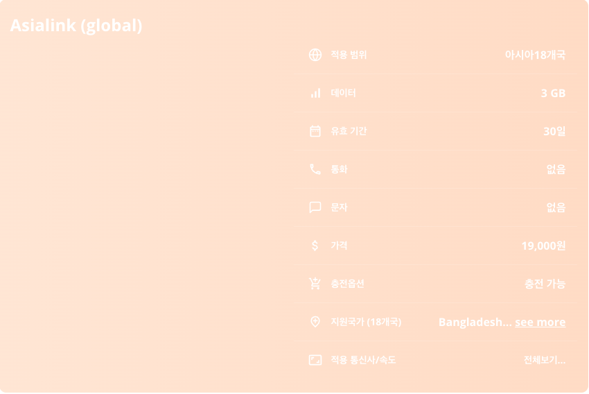 사용해보니 진짜 만족스러운 서비스였어요. 가격도 저렴하고, 여러 나라에서 쓸 수 있어서 정말 좋았습니다. 한 번의 구매로 다양한 동남아 국가에서 인터넷을 마음껏 사용할 수 있다는 점이 가장 매력적이라고 생각해요.