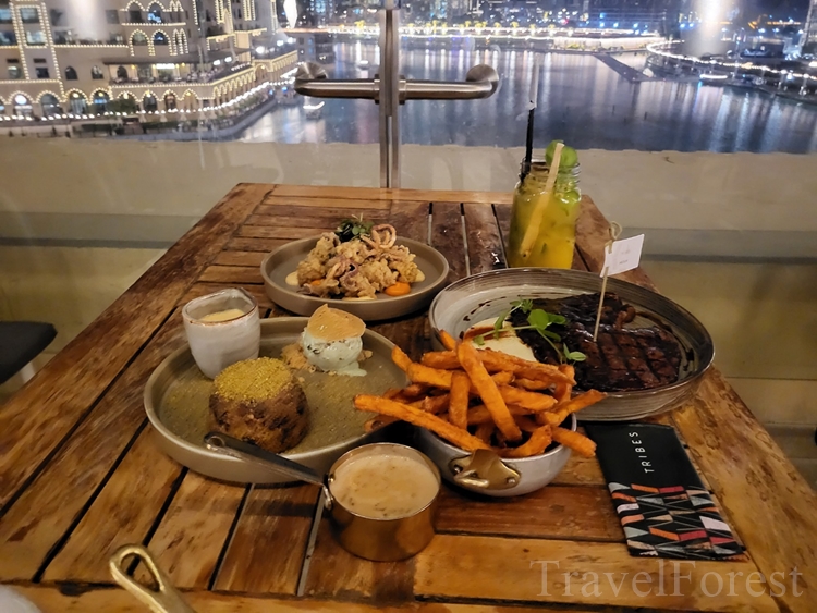 야외 테이블에서 앉아 친구들과 함께 좋은 음식을 나누며 분수쇼를 바라보는 것은 정말 특별한 경험이었습니다. 이 순간을 위해 예약한 두바이 분수쇼 야경 맛집 트라이브스 레스토랑의 가치는 그 어느 것보다 컸답니다.