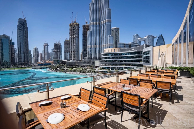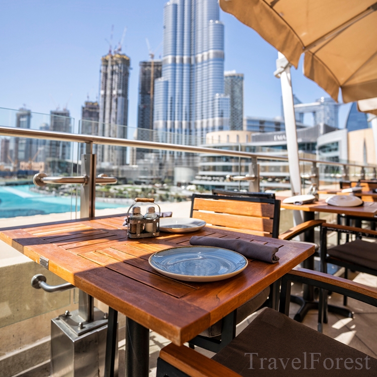 제가 방문했던 날은 아름다운 석양이 지고, 하늘이 보랏빛으로 물든 그 순간이었습니다. 식당 뒷편에는 두바이 분수쇼의 물줄기가 화려하게 올라오면서 청명한 음악과 함께 어우러지고 있었죠. 그 모습은 마치 영화의 한 장면처럼 느껴졌습니다.