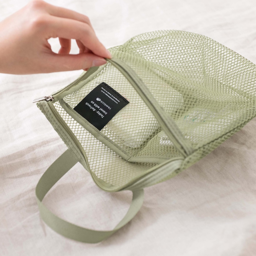 여행의 필수템, 메쉬 욕실 세면 도구 파우치 발견