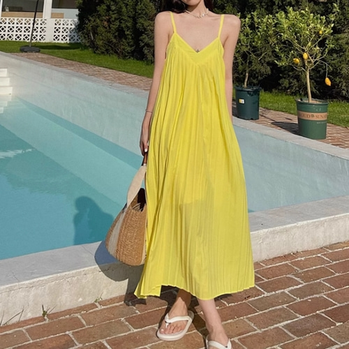 • 디자인, 세련된 롱 원피스 디자인으로 발리의 해변과 잘 어울리는 화사한 옐로우 색상입니다.
