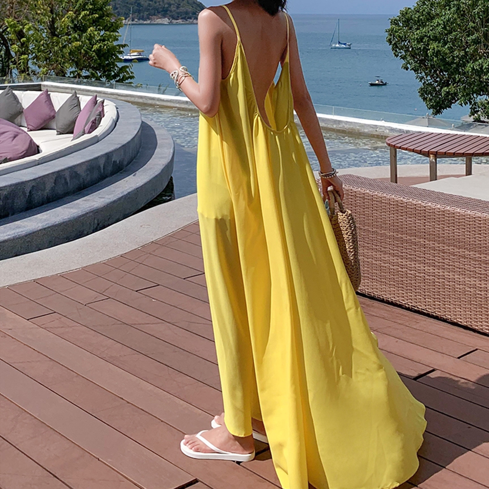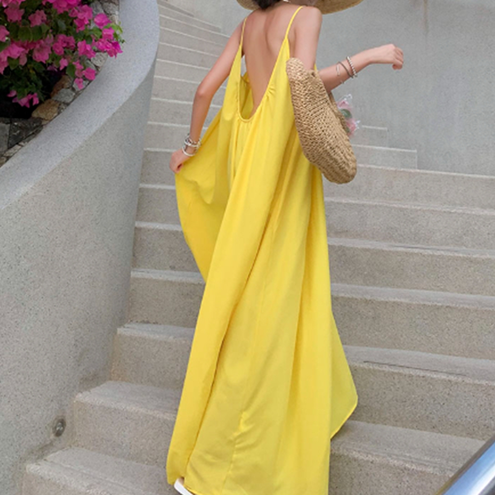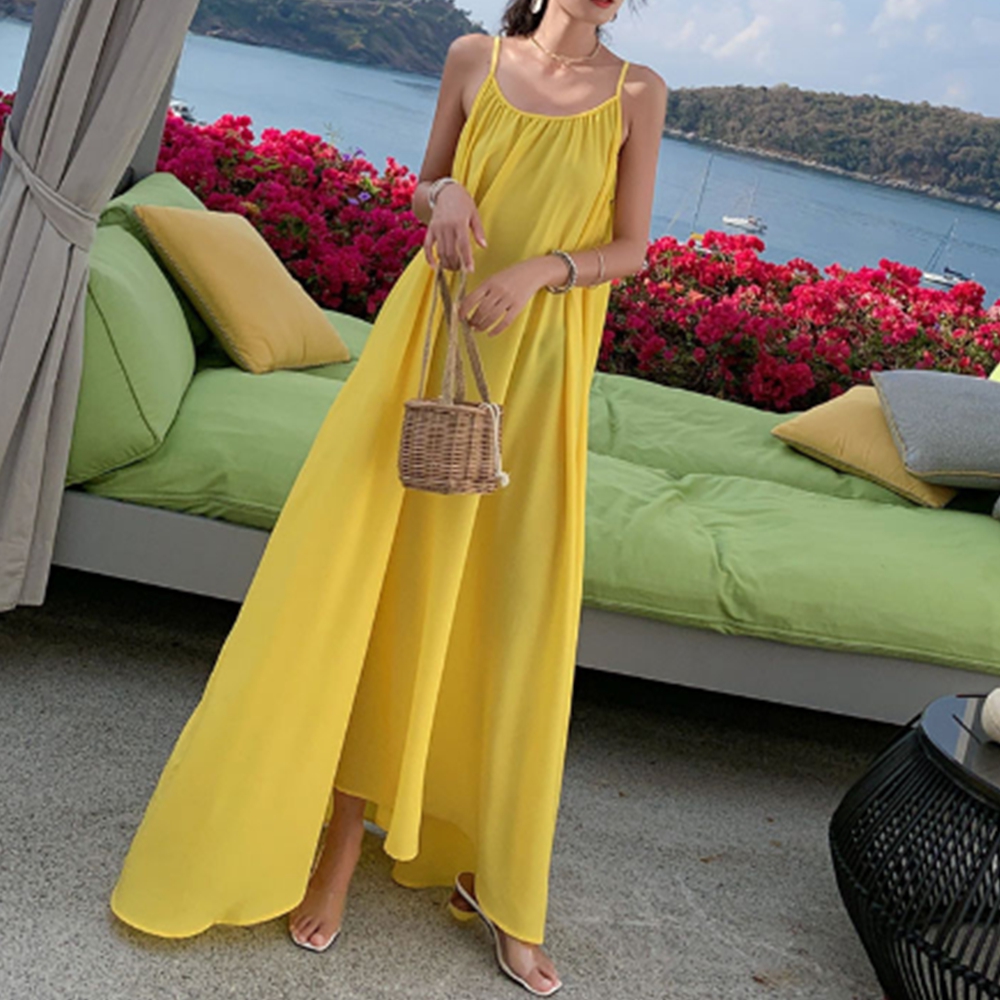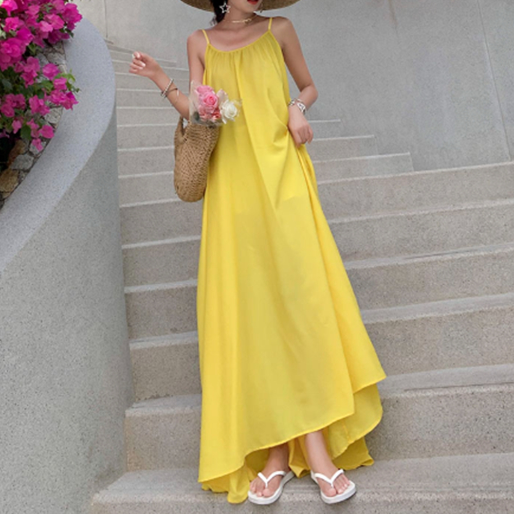 - 디자인. 버터옐로우 색상이 여름의 밝은 느낌을 잘 표현하고, 맥시 기장으로 체형을 커버해줍니다.
