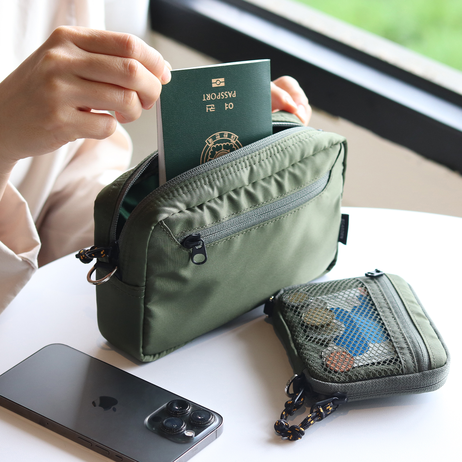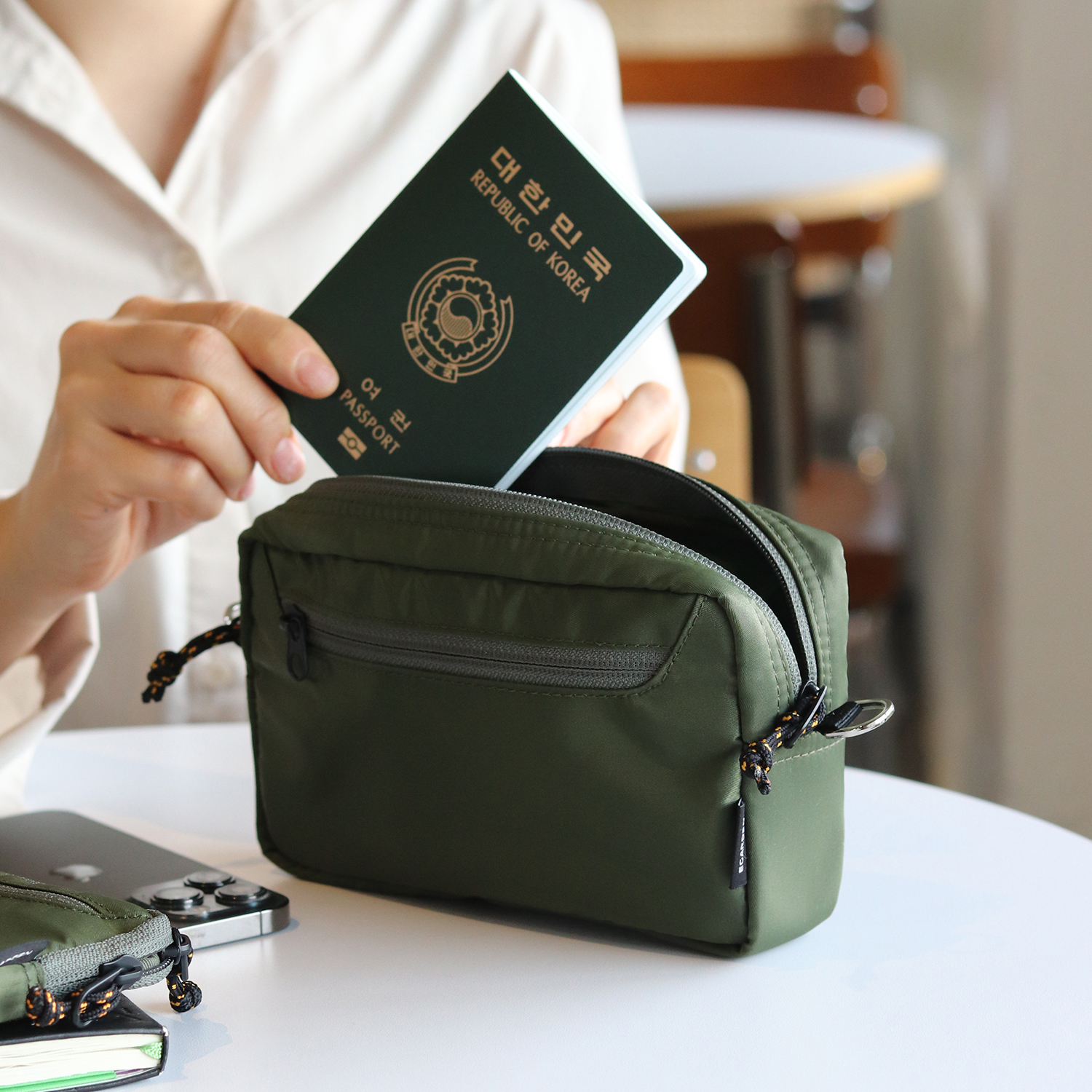 발견한 에가든 트래블러 여행용 파우치 다용도 크로스백 겸용 카키